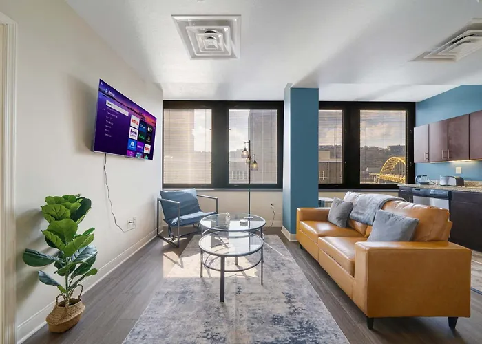 Ofertas de Cozy Chic Downtown Pittsburgh 7Th Floor Views Fast Wifi 24-7 Gym Lounge Roku
